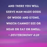 And there you will serve man-made gods of wood and stone, which cannot see or hear or eat or smell.