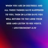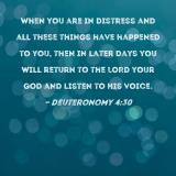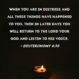 When you are in distress and all these things have happened to you, then in later days you will return to the LORD your God and listen to His voice.