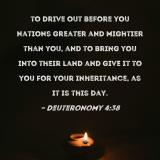 to drive out before you nations greater and mightier than you, and to bring you into their land and give it to you for your inheritance, as it is this day.