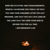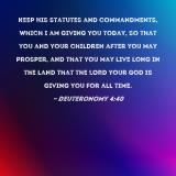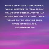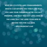 Keep His statutes and commandments, which I am giving you today, so that you and your children after you may prosper, and that you may live long in the land that the LORD your God is giving you for all time.