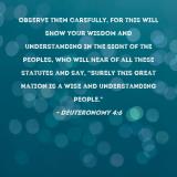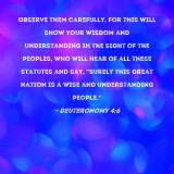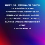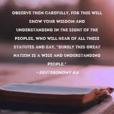 Observe them carefully, for this will show your wisdom and understanding in the sight of the peoples, who will hear of all these statutes and say, "Surely this great nation is a wise and understanding people."