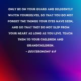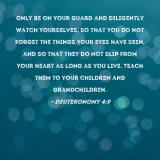 Only be on your guard and diligently watch yourselves, so that you do not forget the things your eyes have seen, and so that they do not slip from your heart as long as you live. Teach them to your children and grandchildren.
