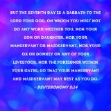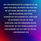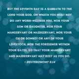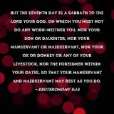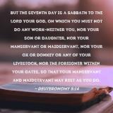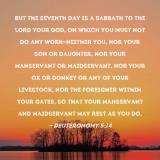 Pictures and Artwork but the seventh day is a Sabbath to the LORD your God, on which you must not do any work--neither you, nor your son or daughter, nor your manservant or maidservant, nor your ox or donkey or any of your livestock, nor the foreigner within your gates, so that your manservant and maidservant may rest as you do. |