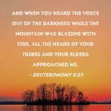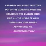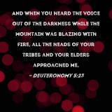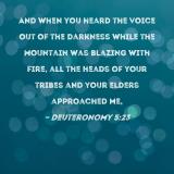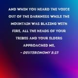 And when you heard the voice out of the darkness while the mountain was blazing with fire, all the heads of your tribes and your elders approached me,