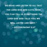 Go near and listen to all that the LORD our God says. Then you can tell us everything the LORD our God tells you; we will listen and obey."