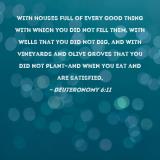 with houses full of every good thing with which you did not fill them, with wells that you did not dig, and with vineyards and olive groves that you did not plant--and when you eat and are satisfied,