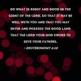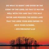 Do what is right and good in the sight of the LORD, so that it may be well with you and that you may enter and possess the good land that the LORD your God swore to give your fathers,