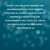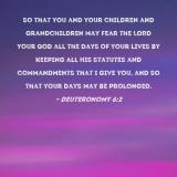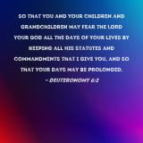 so that you and your children and grandchildren may fear the LORD your God all the days of your lives by keeping all His statutes and commandments that I give you, and so that your days may be prolonged.