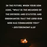 In the future, when your son asks, "What is the meaning of the decrees and statutes and ordinances that the LORD our God has commanded you?"