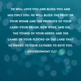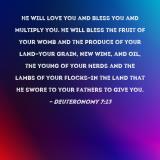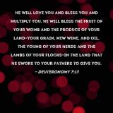 Pictures and Artwork He will love you and bless you and multiply you. He will bless the fruit of your womb and the produce of your land--your grain, new wine, and oil, the young of your herds and the lambs of your flocks--in the land that He swore to your fathers to give you. |