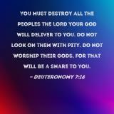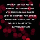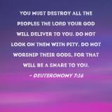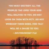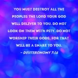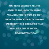 You must destroy all the peoples the LORD your God will deliver to you. Do not look on them with pity. Do not worship their gods, for that will be a snare to you.