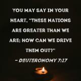 You may say in your heart, "These nations are greater than we are; how can we drive them out?"