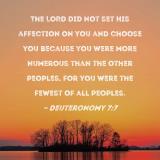 The LORD did not set His affection on you and choose you because you were more numerous than the other peoples, for you were the fewest of all peoples.