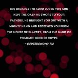 But because the LORD loved you and kept the oath He swore to your fathers, He brought you out with a mighty hand and redeemed you from the house of slavery, from the hand of Pharaoh king of Egypt.