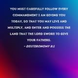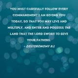 You must carefully follow every commandment I am giving you today, so that you may live and multiply, and enter and possess the land that the LORD swore to give your fathers.