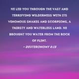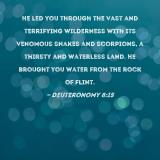 He led you through the vast and terrifying wilderness with its venomous snakes and scorpions, a thirsty and waterless land. He brought you water from the rock of flint.