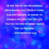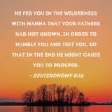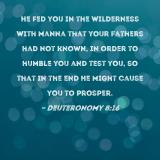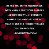 He fed you in the wilderness with manna that your fathers had not known, in order to humble you and test you, so that in the end He might cause you to prosper.