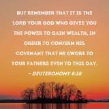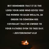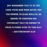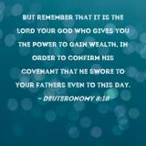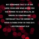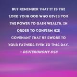 But remember that it is the LORD your God who gives you the power to gain wealth, in order to confirm His covenant that He swore to your fathers even to this day.