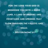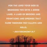 For the LORD your God is bringing you into a good land, a land of brooks and fountains and springs that flow through the valleys and hills;