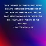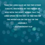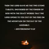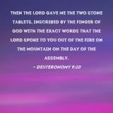Then the LORD gave me the two stone tablets, inscribed by the finger of God with the exact words that the LORD spoke to you out of the fire on the mountain on the day of the assembly.