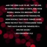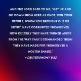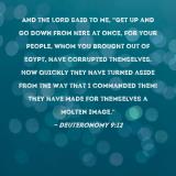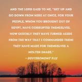 Pictures and Artwork And the LORD said to me, "Get up and go down from here at once, for your people, whom you brought out of Egypt, have corrupted themselves. How quickly they have turned aside from the way that I commanded them! They have made for themselves a molten image." |