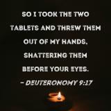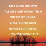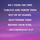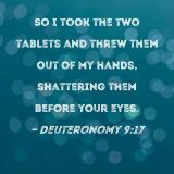 So I took the two tablets and threw them out of my hands, shattering them before your eyes.