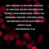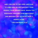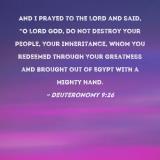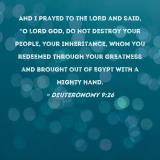 And I prayed to the LORD and said, "O Lord GOD, do not destroy Your people, Your inheritance, whom You redeemed through Your greatness and brought out of Egypt with a mighty hand.
