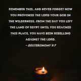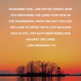 Remember this, and never forget how you provoked the LORD your God in the wilderness. From the day you left the land of Egypt until you reached this place, you have been rebelling against the LORD.
