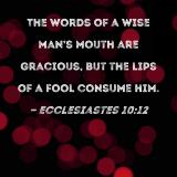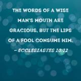 The words of a wise man's mouth are gracious, but the lips of a fool consume him.
