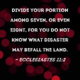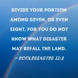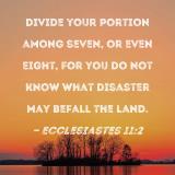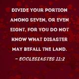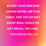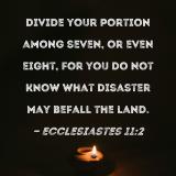 Divide your portion among seven, or even eight, for you do not know what disaster may befall the land.