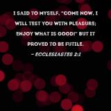 I said to myself, "Come now, I will test you with pleasure; enjoy what is good!" But it proved to be futile.