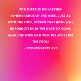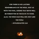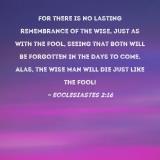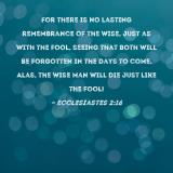 For there is no lasting remembrance of the wise, just as with the fool, seeing that both will be forgotten in the days to come. Alas, the wise man will die just like the fool!
