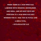 When there is a man who has labored with wisdom, knowledge, and skill, and he must give his portion to a man who has not worked for it, this too is futile and a great evil.