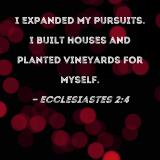 I expanded my pursuits. I built houses and planted vineyards for myself.