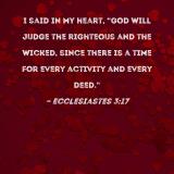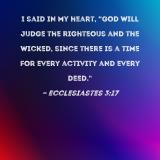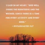 I said in my heart, "God will judge the righteous and the wicked, since there is a time for every activity and every deed."