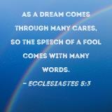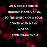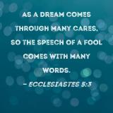 As a dream comes through many cares, so the speech of a fool comes with many words.