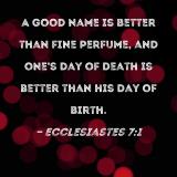 A good name is better than fine perfume, and one's day of death is better than his day of birth.