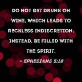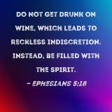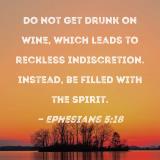 Do not get drunk on wine, which leads to reckless indiscretion. Instead, be filled with the Spirit.