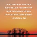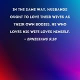 In the same way, husbands ought to love their wives as their own bodies. He who loves his wife loves himself.