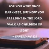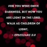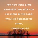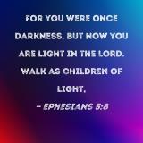 For you were once darkness, but now you are light in the Lord. Walk as children of light,