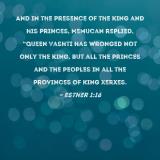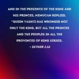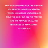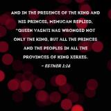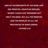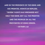 And in the presence of the king and his princes, Memucan replied, "Queen Vashti has wronged not only the king, but all the princes and the peoples in all the provinces of King Xerxes.