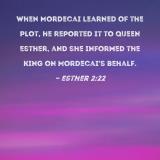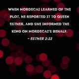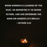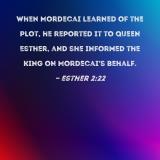 When Mordecai learned of the plot, he reported it to Queen Esther, and she informed the king on Mordecai's behalf.