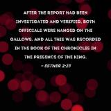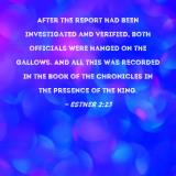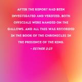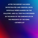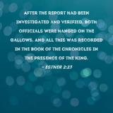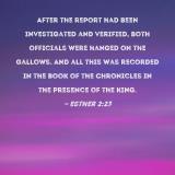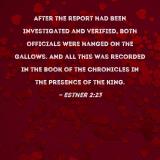 After the report had been investigated and verified, both officials were hanged on the gallows. And all this was recorded in the Book of the Chronicles in the presence of the king.