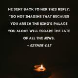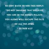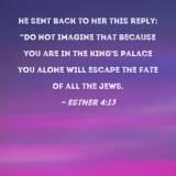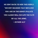 he sent back to her this reply: "Do not imagine that because you are in the king's palace you alone will escape the fate of all the Jews.