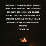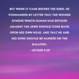 But when it came before the king, he commanded by letter that the wicked scheme which Haman had devised against the Jews should come back upon his own head, and that he and his sons should be hanged on the gallows.