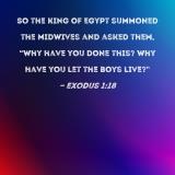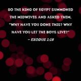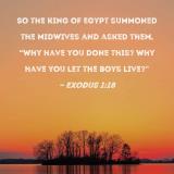 So the king of Egypt summoned the midwives and asked them, "Why have you done this? Why have you let the boys live?"