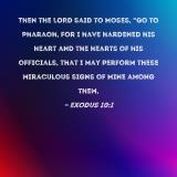 Then the LORD said to Moses, "Go to Pharaoh, for I have hardened his heart and the hearts of his officials, that I may perform these miraculous signs of Mine among them,
