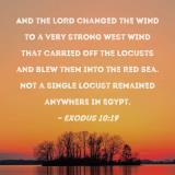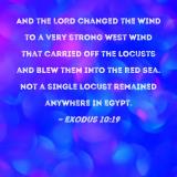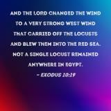 And the LORD changed the wind to a very strong west wind that carried off the locusts and blew them into the Red Sea. Not a single locust remained anywhere in Egypt.