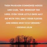 Then Pharaoh summoned Moses and said, "Go, worship the LORD. Even your little ones may go with you; only your flocks and herds must stay behind."