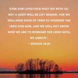 Even our livestock must go with us; not a hoof will be left behind, for we will need some of them to worship the LORD our God, and we will not know how we are to worship the LORD until we arrive."